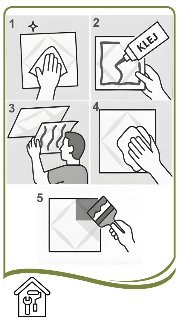 DIY – montaż bez narzędzi – wystarczy klej do polistyrenu i nożyk tapicerski; całą aranżację wykonasz samodzielnie w jeden dzień.
