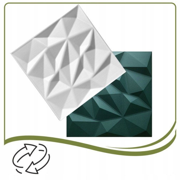 Te panele 3D z głęboko tłoczonym wzorem Brylant (wysokość ~2,5 cm) przyciągają wzrok i tworzą subtelną grę światła i cienia. Dzięki temu Twój sufit lub ściana zyskuje nowy, przestrzenny wymiar. Zielony kolor doskonale pasuje do wnętrz w stylu botanicznym, ekologicznym i nowoczesnym, dodając im harmonii i spokoju.